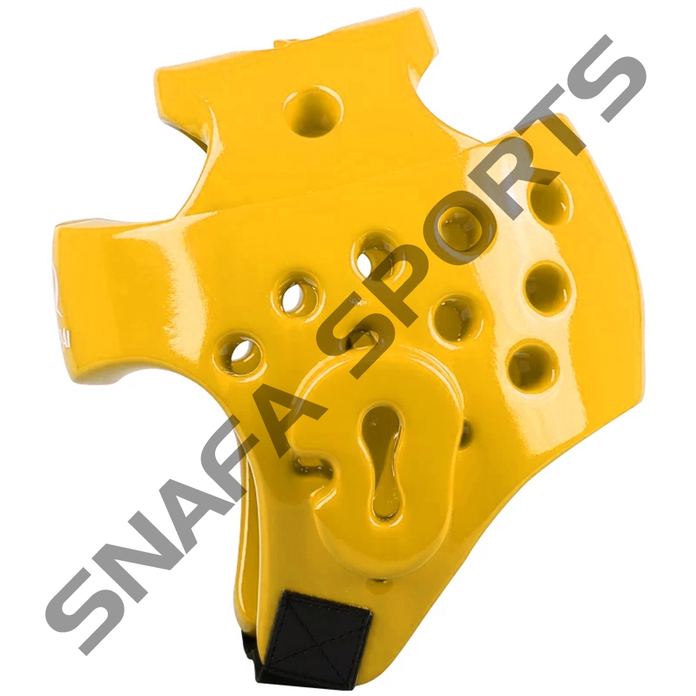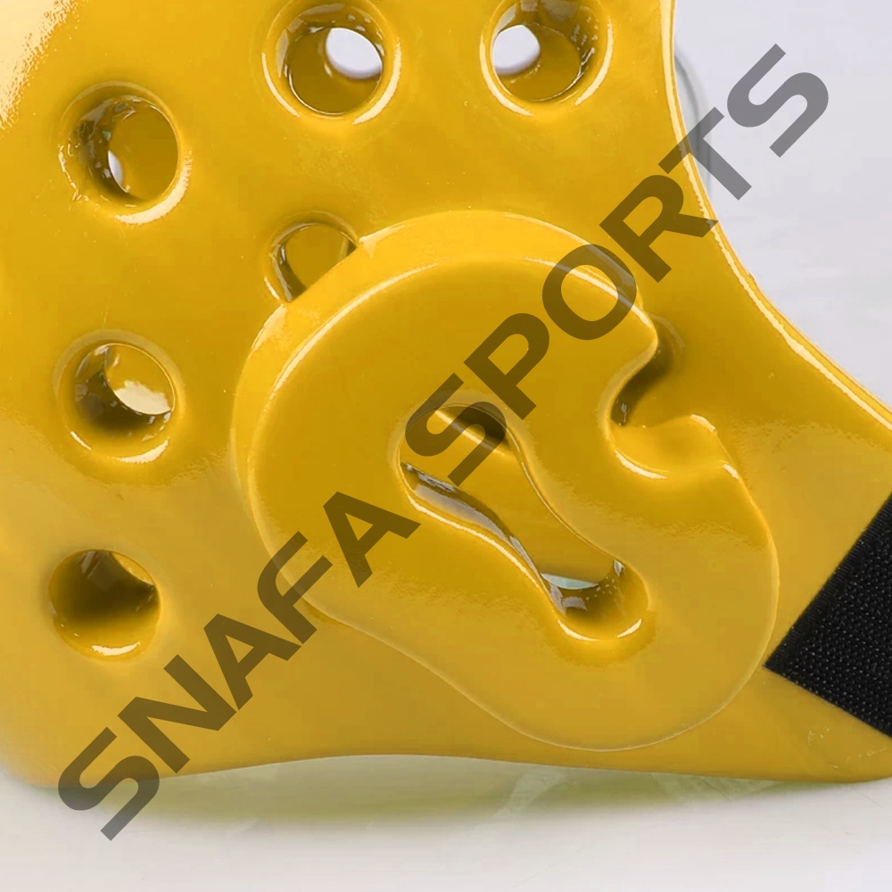 Taekwondo headgear is typically made from vinyl or dipped foam and is fastened by a chin strap. It may contain vents designed for better ventilation and hearing. Face cages may also be attached to Taekwondo headgear to offer additional protection to the face.