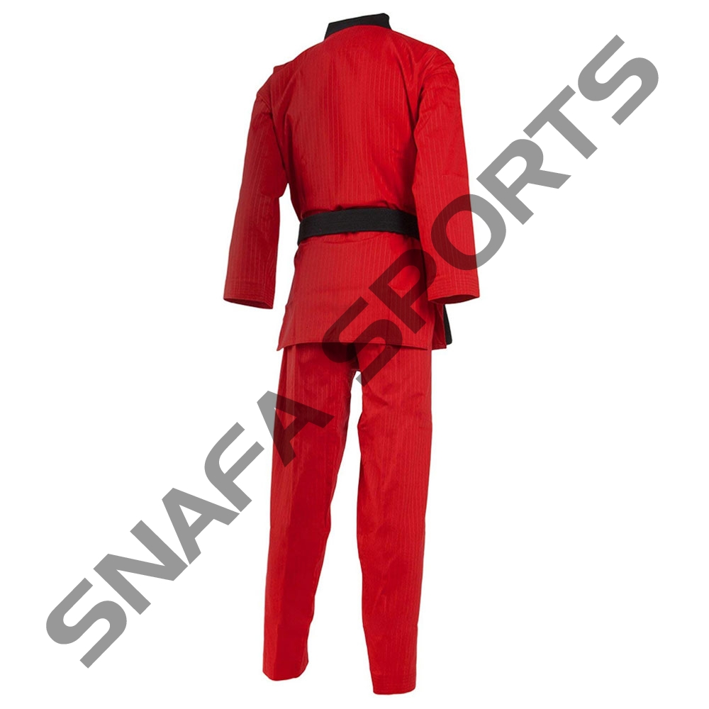 the karategi (custom karate uniform) has evolved in a manner that maximizes mobility and speed without the extremely coarse and strong fabric required for grappling and throwing found in Judo.